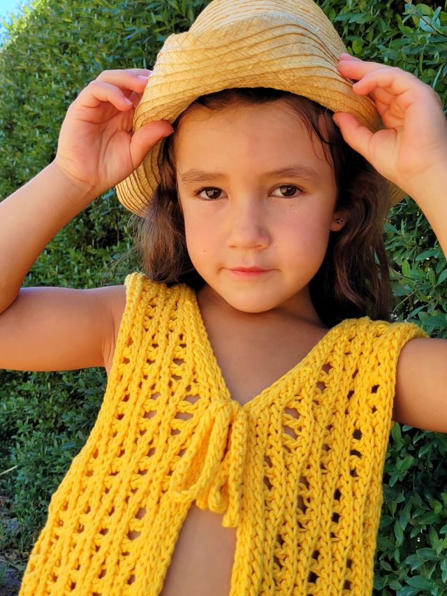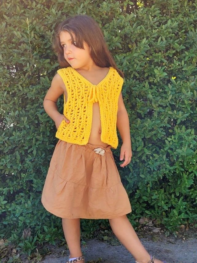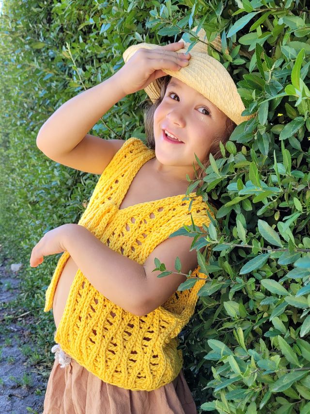 Es un diseño tejido al crochet muy sencillo pero que no pasa desapercibido. El hecho ser calado, estar tejido con un hilado de grosor intermedio y en una sóla pieza, le dan la característica de ser tejido en poco tiempo.
