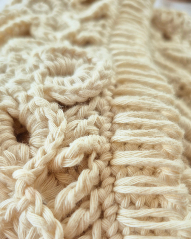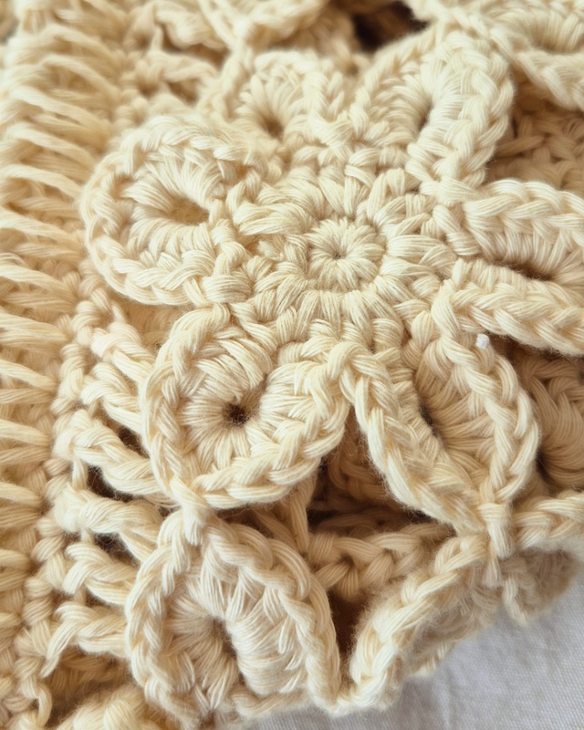 Vamos tejiendo y uniendo flor por flor en la medida en que avanzamos con el tejido.