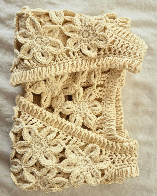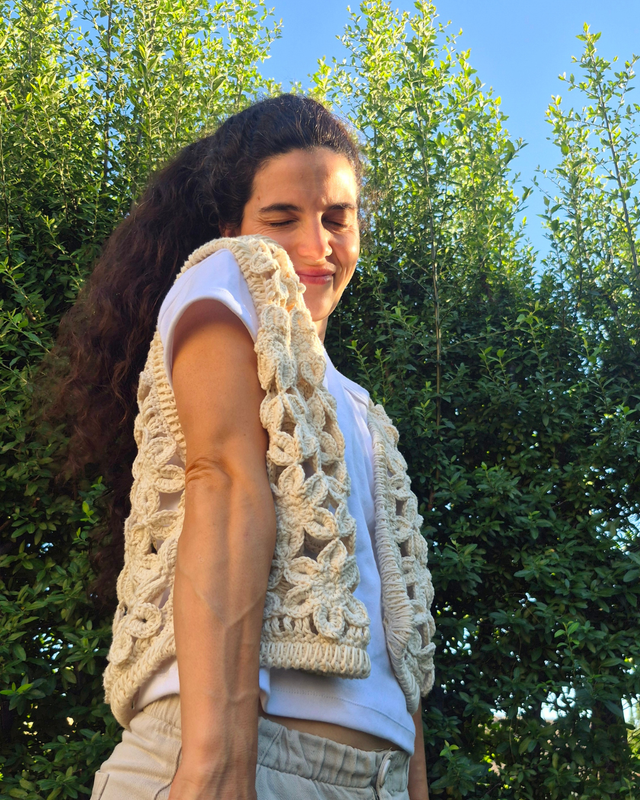 Flowers es un chaleco que surge de la mera intención de compartir y crear junto a mi comunidad. Es el resultado de un proceso creativo inspirado en un modelo industrial.