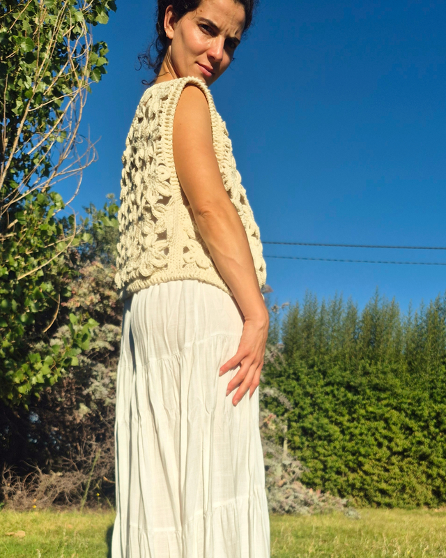 En este curso no vas a encontrar explicaciones por talle, es decir que vas a poder adaptar este chaleco a cualquier tamaño, en función del hilado que tengas y que quieras.
